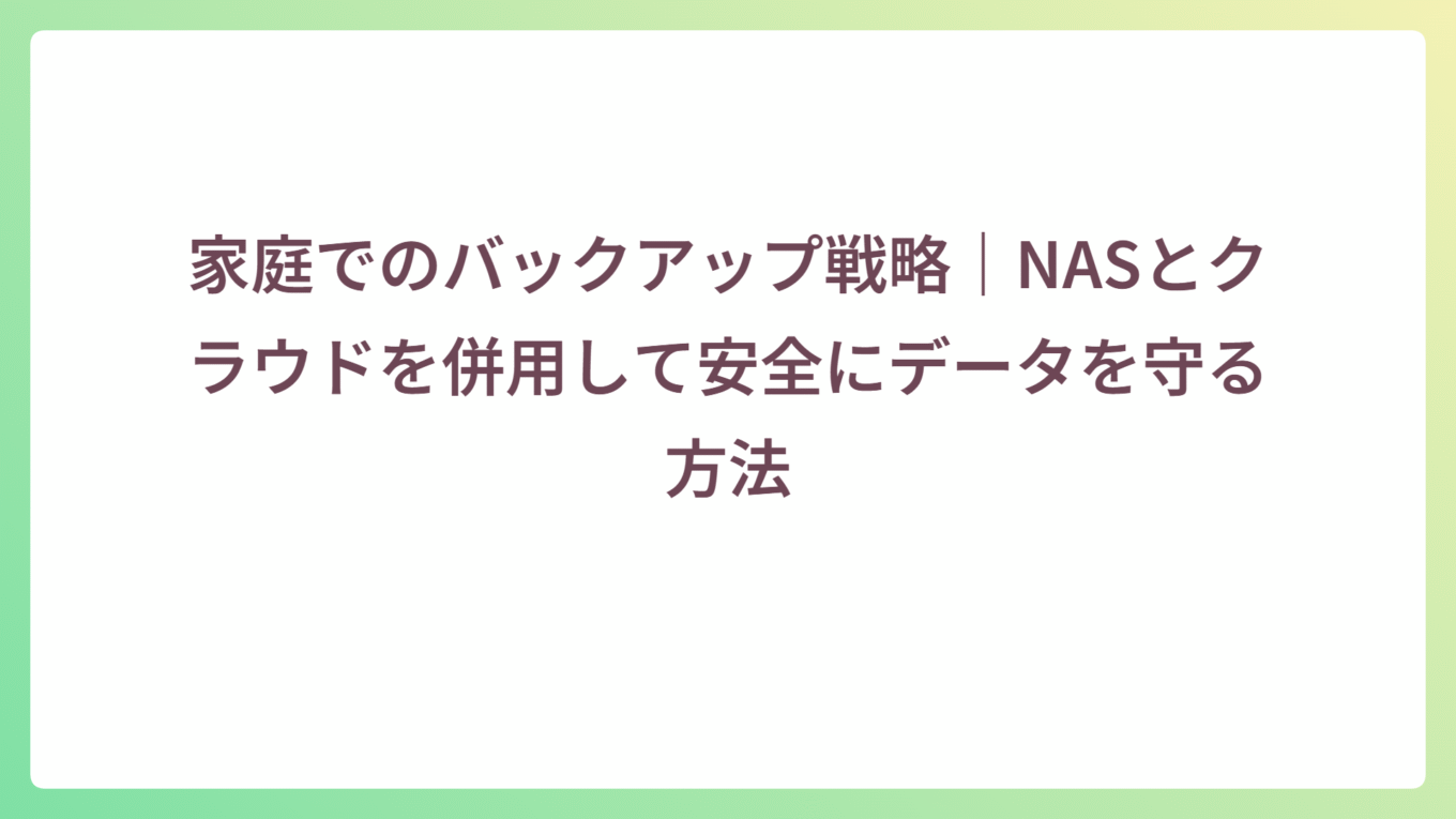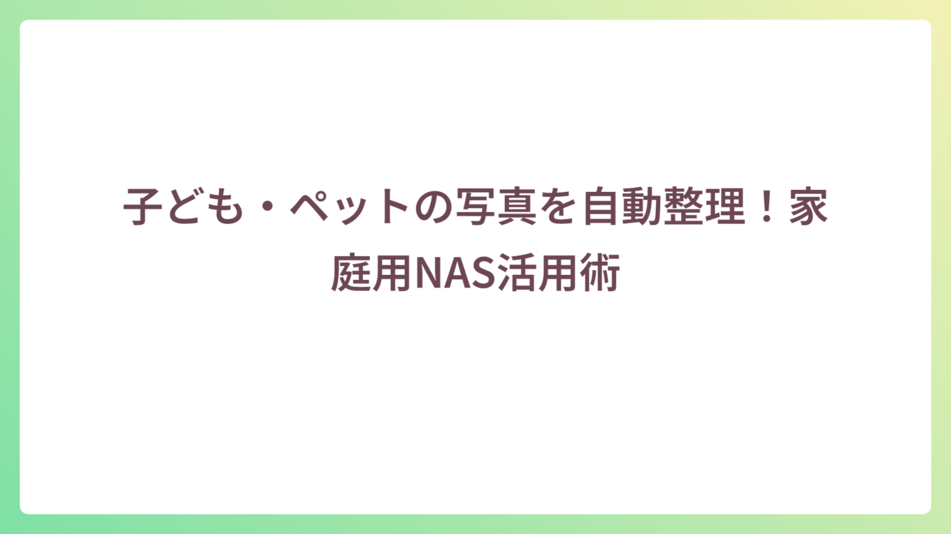 新着記事News 省エネ&静音!ホーム用NASを快適に使う設定方法 2025.09.04 3.NAS活用ガイド 子ども・ペットの写真を自動整理!家庭用NAS活用術 2025.09.04 3.NAS活用ガイド 家庭でのバックアップ戦略|NASとクラウドを併用して安全にデータを守る方法 2025.09.04 3.NAS活用ガイド 1.NAS入門・選び方 2.NASトラブル解決 3.NAS活用ガイド 4.NASレビュー 5.ネットワーク・周辺機器 人気記事Popular Post ext4とBtrfsの違いは? 560 views 家庭内でのNASの設置場所について 141 views RAIDとSynology SHRの違いは? 140 views 【2025年版】家庭用NASおすすめメーカー比較|Synology・QNAP・Buffaloなど主要5社を徹底解説 123 views 【徹底比較】家庭用NASにおすすめのHDDとSSD:2025年最新版 84 views 【トラブル解決】NASが見つからない!Windows/Macでの対処法まとめ 70 views NASとは?初心者が絶対に知るべき基礎知識と活用法を徹底解説 68 views 🔍 初めてのNASに最適!Synology DS223jの魅力と活用法を徹底解説 55 views クラウドじゃない人絶対保存領域の継承者Profile自宅やオフィスでのNAS活用をもっと身近に、わかりやすく伝えることを目指して「ありがとNAS」を運営しています。IT企業でサーバー・ストレージの導入や運用を経験し、現在は趣味と実務を活かして記事を執筆。初心者でも安心してNASを使いこなせるよう、最新機種レビューからトラブル解決まで実際に検証した情報を発信しています。