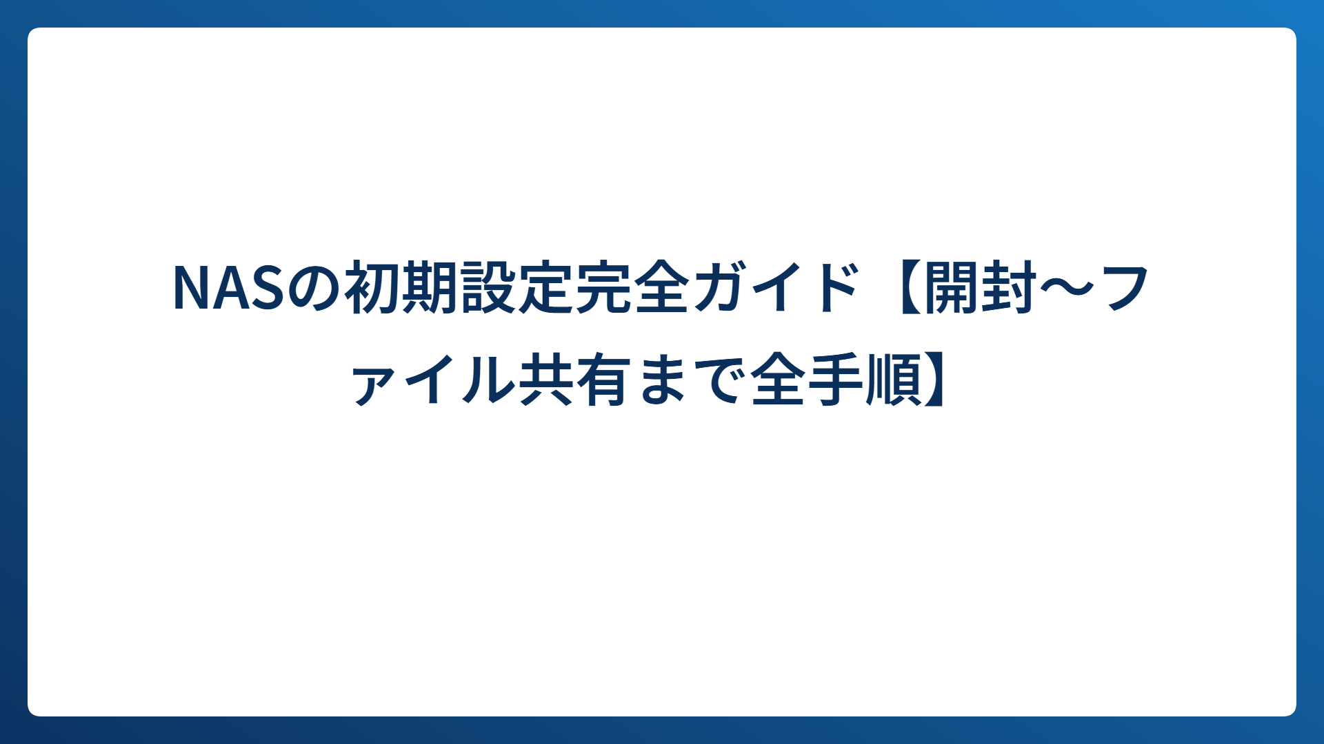 NASの初期設定完全ガイド【開封〜ファイル共有まで全手順】
